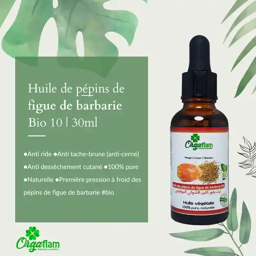 Découvrez l’huile des pépins de figue de Barbarie de la marque Orgaflam, disponible en formats pratiques de 10ml ou 30ml. Cette huile naturelle regorge de bienfaits pour la peau. Grâce à ses propriétés antioxydantes, assouplissantes, nourrissantes, hydratantes, cicatrisantes et régénérantes cutanées.